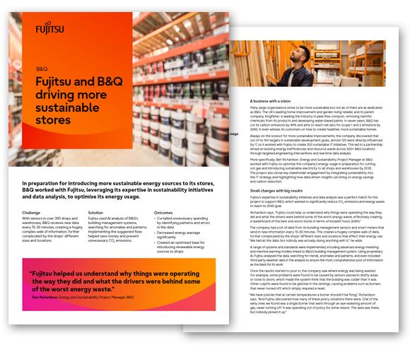 Fujitsu’s expertise in sustainability initiatives and data analysis was a perfect match for this project to support B&Q, which wanted to significantly reduce CO2 emissions and energy waste to reach its 2040 goal.